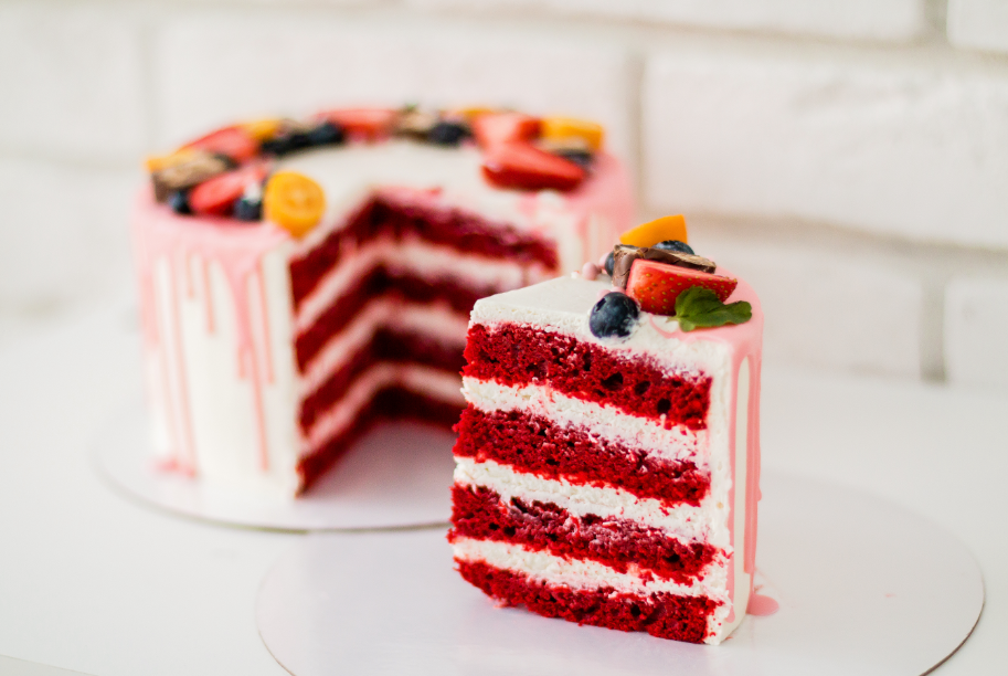 При заказе вы можете добавить начинку "Красный бархат" в торт.